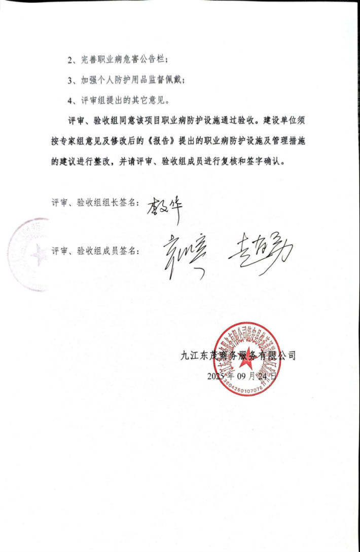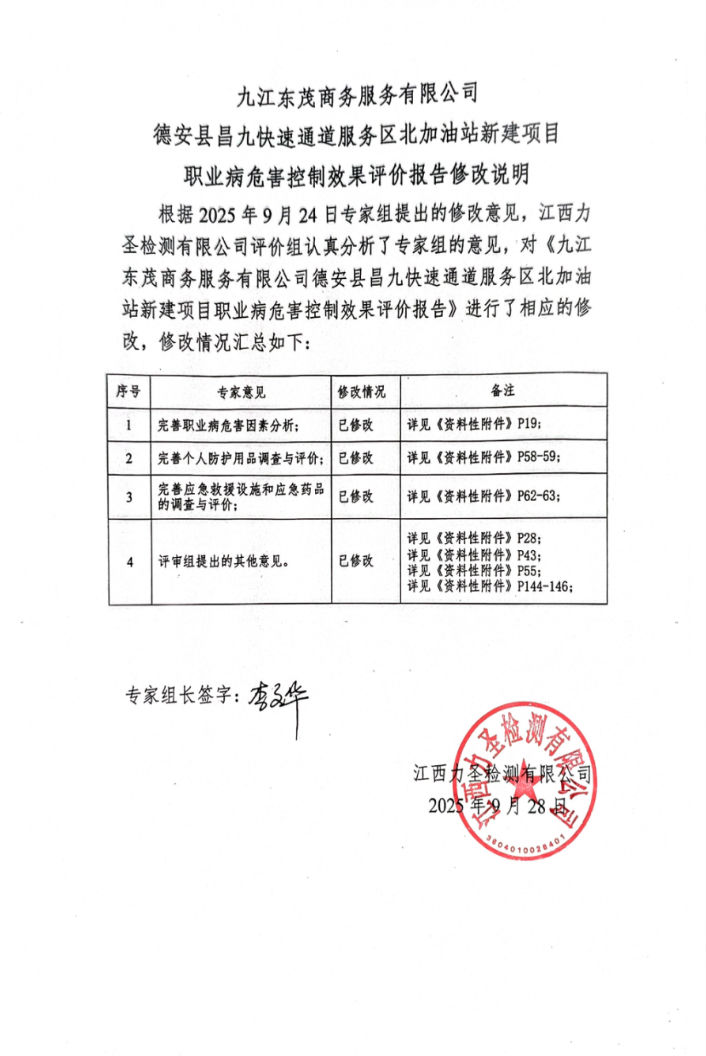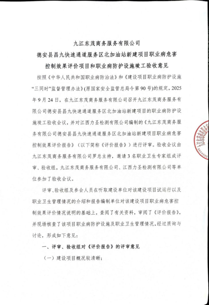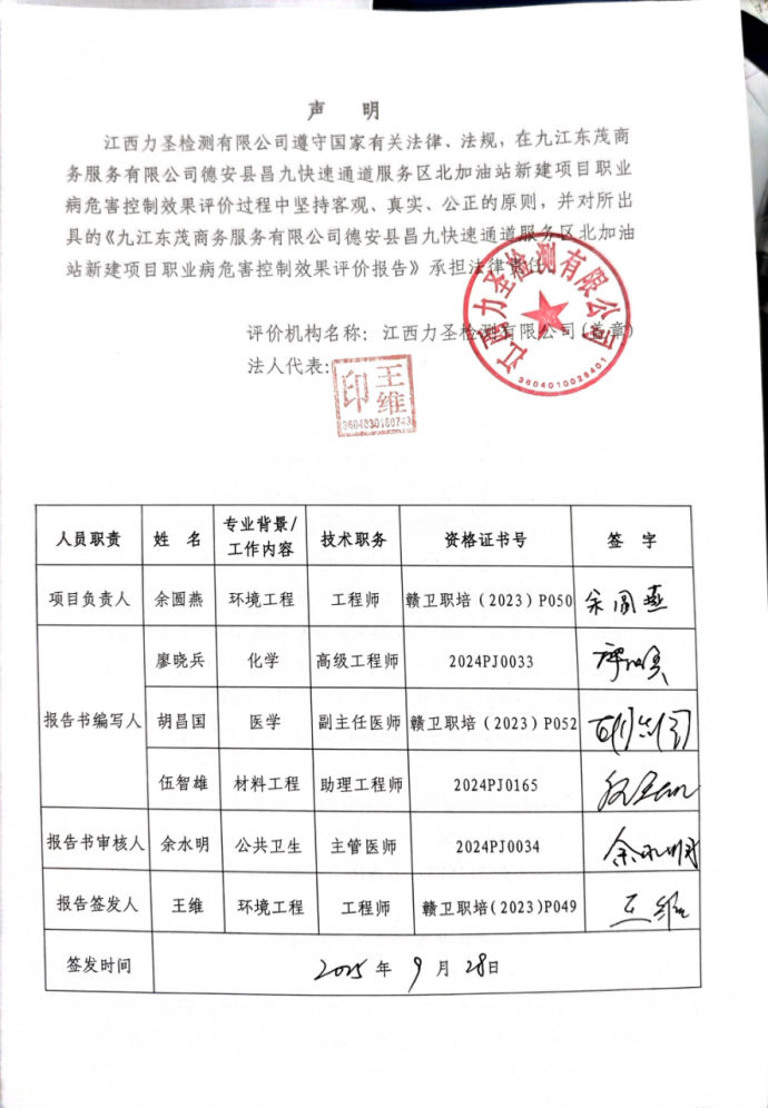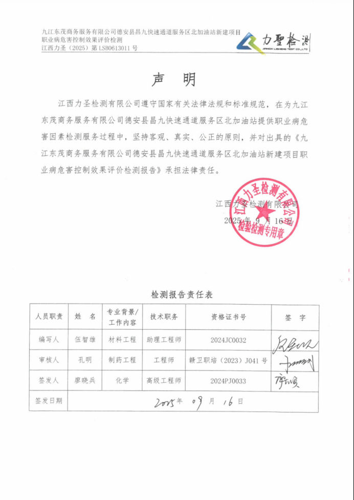 九江东茂商务服务有限公司德安县昌九快速通道服务区北加油站新建项目职业病危害控制效果评价检测报告