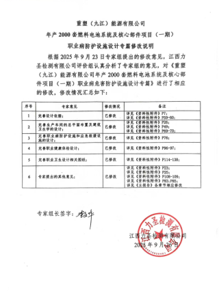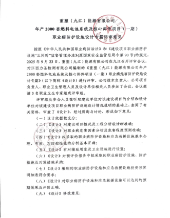 重塑(九江)能源有限公司年产2000套燃料电池系统及核心部件项目(一期)职业病危害防护设施设计专篇 江西力圣(2025)第LSZF0616033号