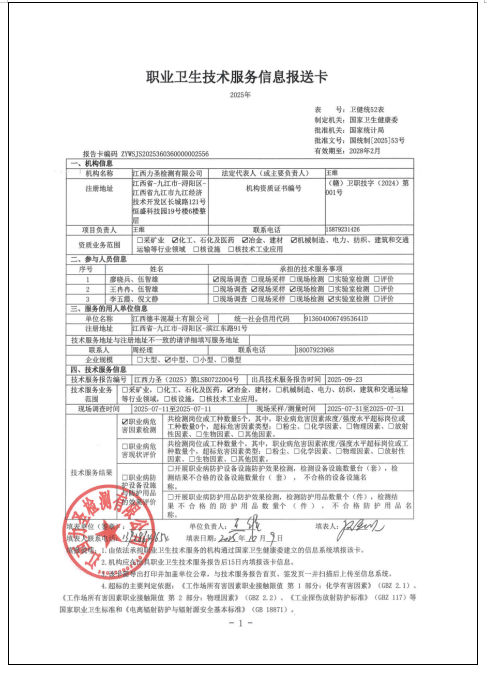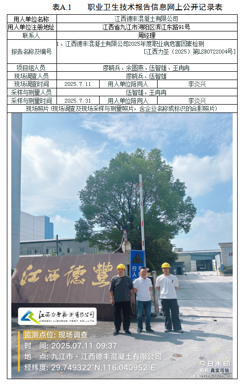 江西德丰混凝土有限公司职业病危害因素定期检测