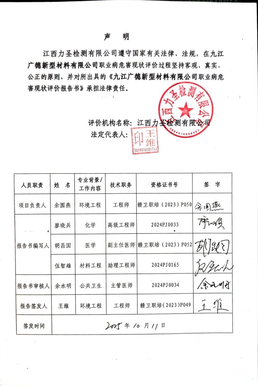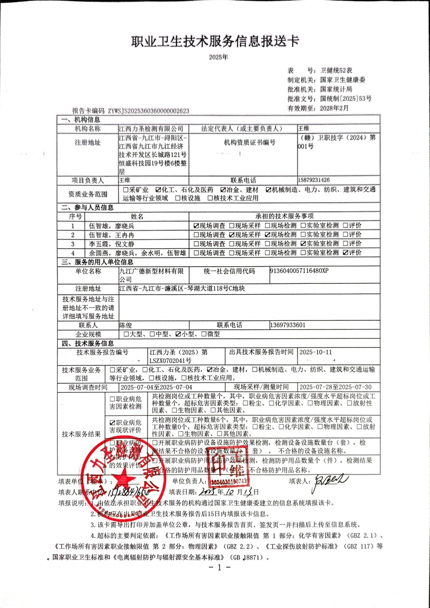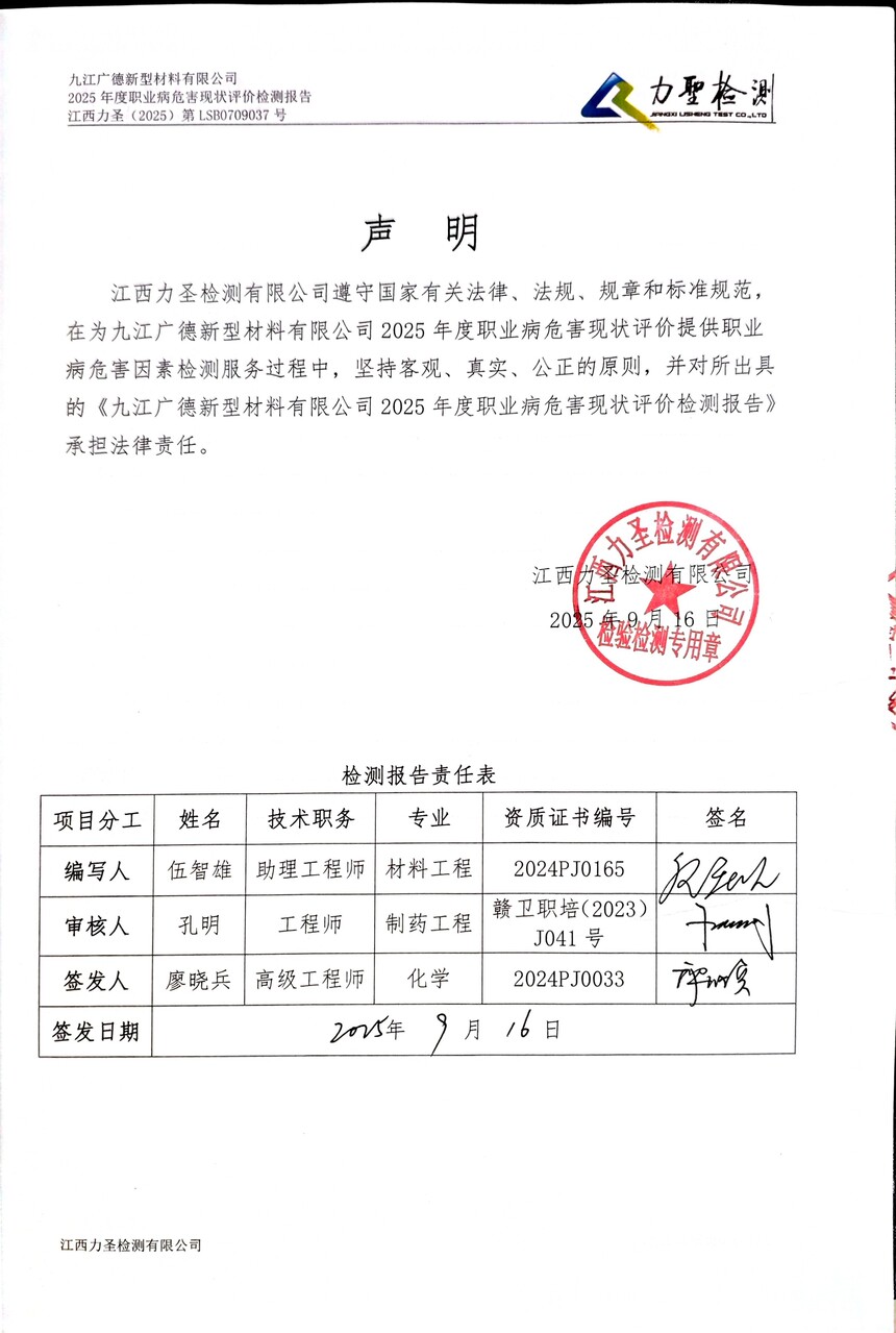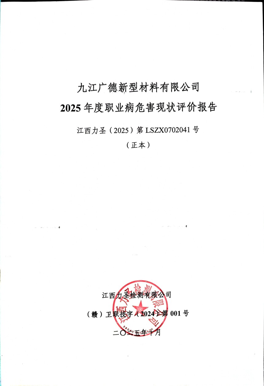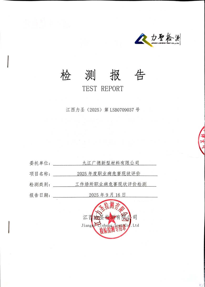 九江广德新型材料有限公司2025年度职业病危害现状评价