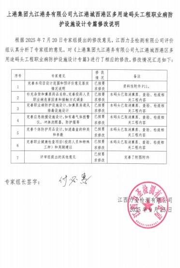 上港集团九江港务有限公司九江港城西港区多用途码头工程职业病危害防护设施设计专篇时间:2025-09-25 表A.1 职业卫生技术报告信息网上公开记录表