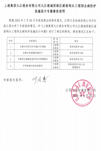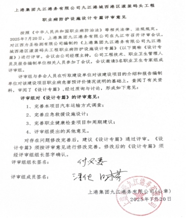 上港集团九江港务有限公司九江港城西港区滚装码头工程职业病危害防护设施设计专篇时间:2025-09-25 表A.1 职业卫生技术报告信息网上公开记录表