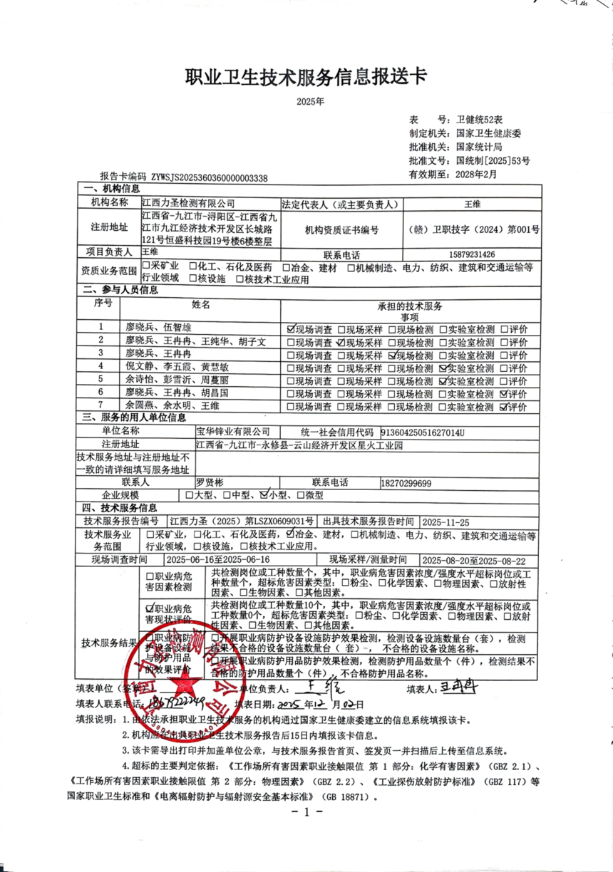 宝华锌业有限公司2025年度职业病危害现状评价报告