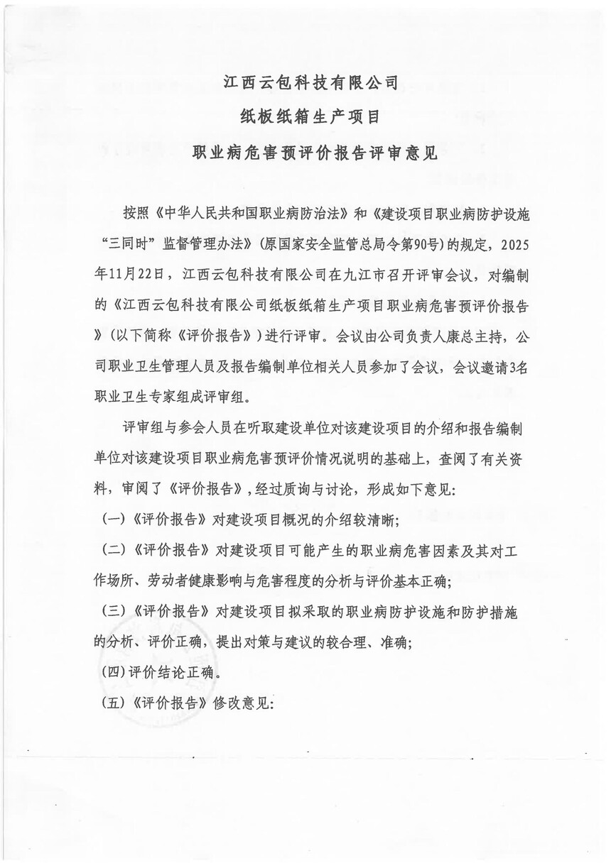 江西云包科技有限公司纸板纸箱生产项目职业病危害预评价报告